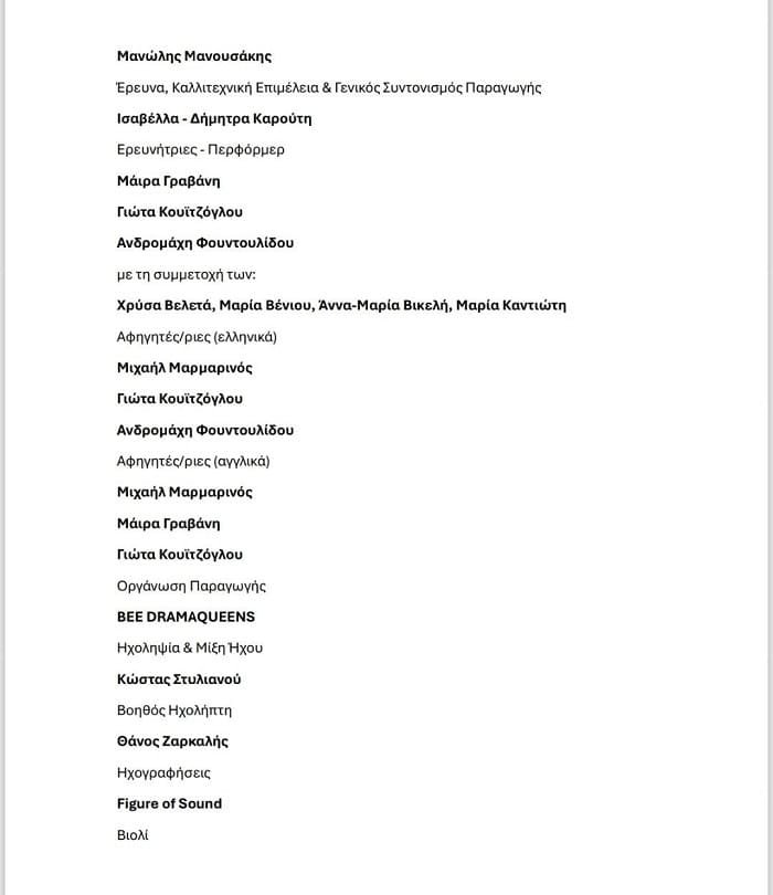 Μια μοναδική περιπατητική παράσταση με τη σκηνοθετική υπογραφή του Μιχαήλ Μαρμαρινού και τη μουσική του Μανώλη Μανουσάκη.