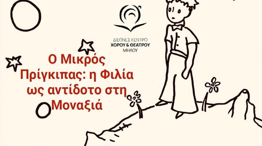 Ο Μικρός Πρίγκιπας: Η Φιλία ως αντίδοτο στη Μοναξιά – Ως το «επόμενο βήμα» της παράστασης της Ομάδας Παιδιών και Εφήβων Σύγχρονου Χορού Μήλου με άξονα τον «Μικρό Πρίγκιπα» τον προηγούμενο Μάιο, το Διεθνές Κέντρο Χορού & Θεάτρου Μήλου ΑΜΚΕ έχει τη χαρά να προσκαλέσει τα παιδιά και τους έφηβους της Μήλου σε ένα εργαστήριο Χορού, Θεάτρου και Εικαστικών, υπό την αιγίδα και με την υποστήριξη του Υπουργείου Πολιτισμού και Αθλητισμού.