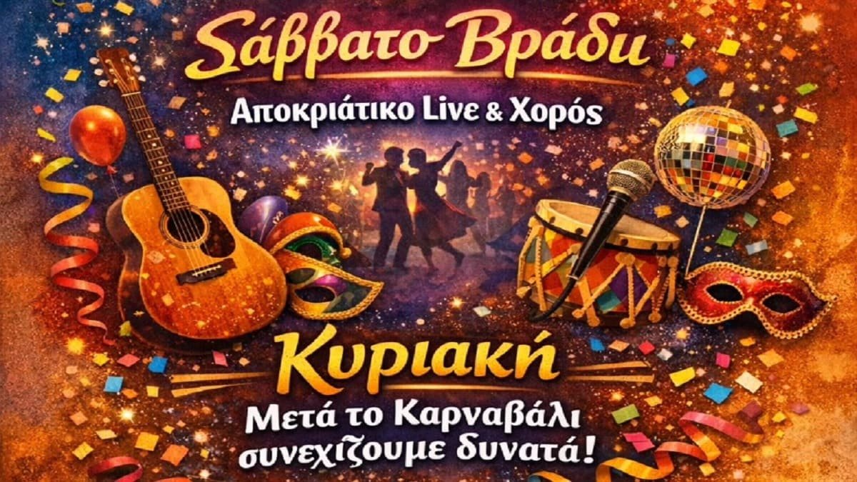 Το πρόγραμμα ξεκινά την Τσικνοπέμπτη, ενώ το Σάββατο βράδυ θα πραγματοποιηθεί αποκριάτικο live με χορό.