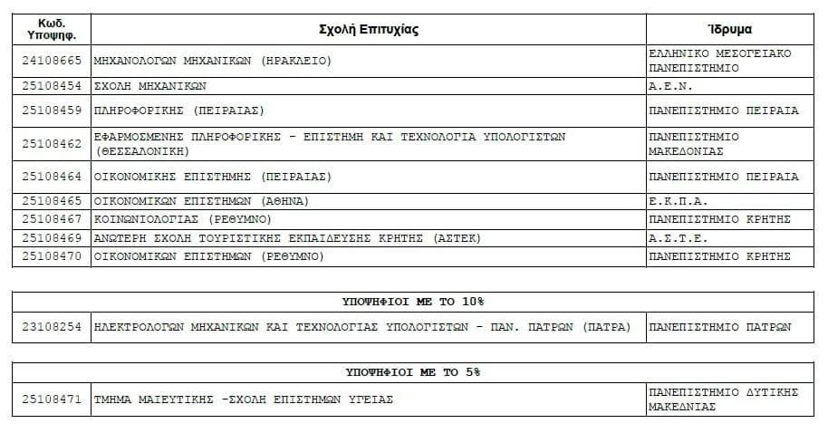 Αξίζουν ιδιαίτερα συγχαρητήρια σε όσους κατόρθωσαν να εισαχθούν στην πρώτη τους επιλογή.