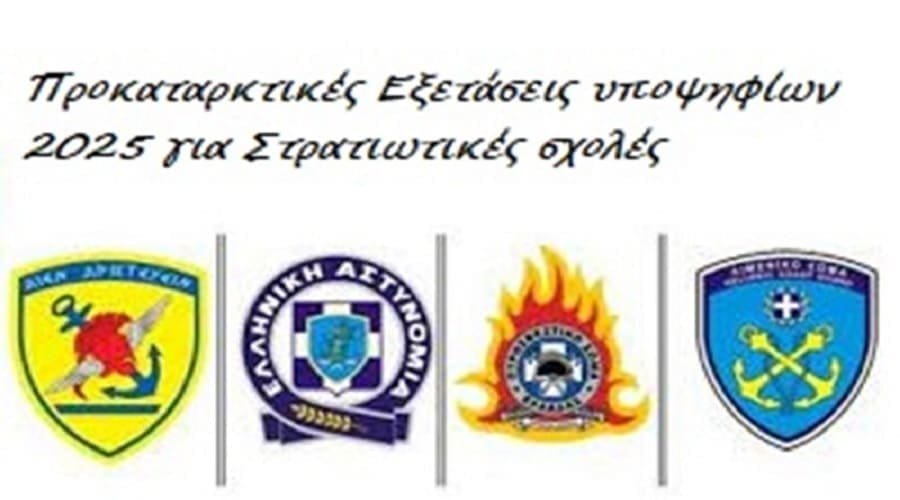 Εγκύκλιο του ΥΠΑΙΘΑ σχετικά με τις Προκαταρκτικές Εξετάσεις (ΠΚΕ) για εισαγωγή των υποψηφίων των Πανελλαδικών Εξετάσεων στις σχολές του Λιμενικού Σώματος, στις Στρατιωτικές Σχολές, στις Σχολές του Πυροσβεστικού Σώματος, στις Σχολές της Ελληνικής Αστυνομίας και στις Ακαδημίες Εμπορικού Ναυτικού, που προγραμματίζονται να διενεργηθούν την περίοδο Μαρτίου – Απριλίου 2025.
