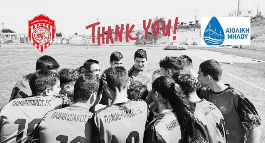 Το Δ.Σ. του Παμμηλιακού Α.Σ. εκφράζει τις εγκάρδιες ευχαριστίες του και την βαθιά ευγνωμοσύνη του στην Αιολική Μήλου για την πολύτιμη διαχρονική στήριξη και την σημαντικότατη χορηγία στο Σύλλογό μας.