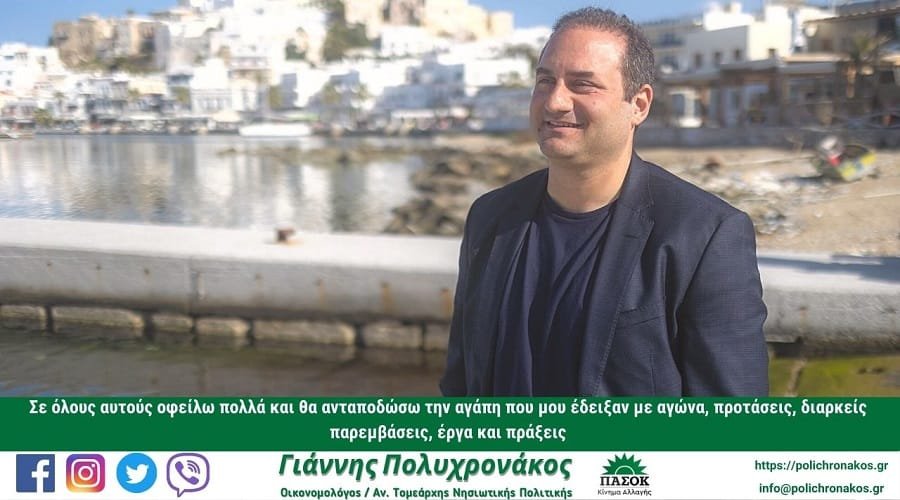 Ο αν. Τομεάρχης Νησιωτικής Πολιτικής του ΠΑΣΟΚ και υπ. Βουλευτής του Νομού Κυκλάδων κ. Γιάννης Πολυχρονάκος, έκανε την ακόλουθη δήλωση για το εκλογικό αποτέλεσμα: