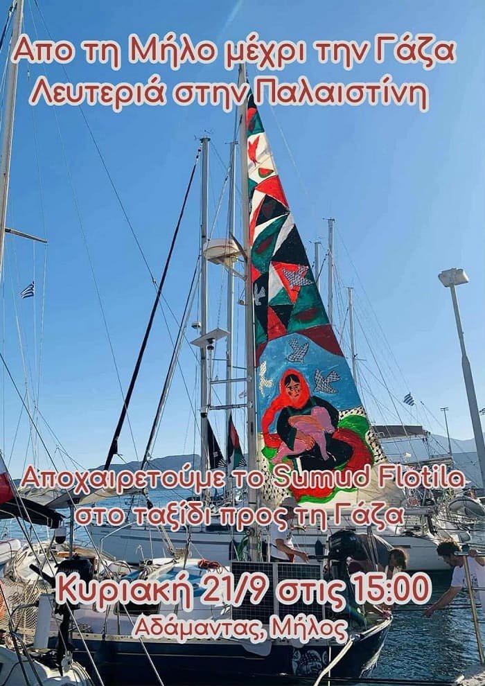 Στις 15:00 εκφράζουμε την αλληλεγγύη μας και αποχαιρετούμε το Sumud Flotilla στο ταξίδι του προς τη Γάζα.
