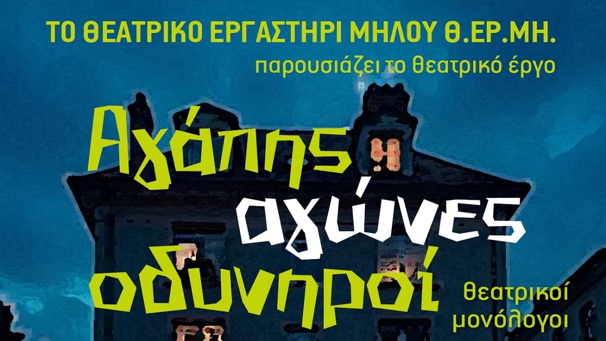 Το Θεατρικό Εργαστήρι Μήλου (ΘΕ.Ρ.ΜΗ) παρουσιάζει την παράσταση «Αγάπης Αγώνες Οδυνηροί» σε σκηνοθεσία της Ιρίνα Μπόικο.