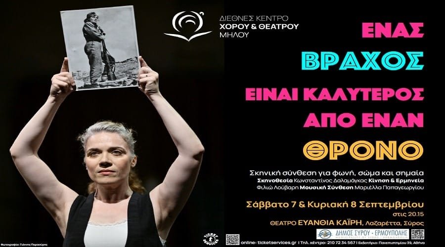 Η παράσταση «Ένας βράχος είναι καλύτερος από έναν θρόνο» συνεχίζει το ταξίδι του στην Ελλάδα, και θα παρουσιαστεί στη Σύρο το Σάββατο 7 & την Κυριακή 8 Σεπτεμβρίου στο ανοιχτό θέατρο «Ευανθία Καΐρη»