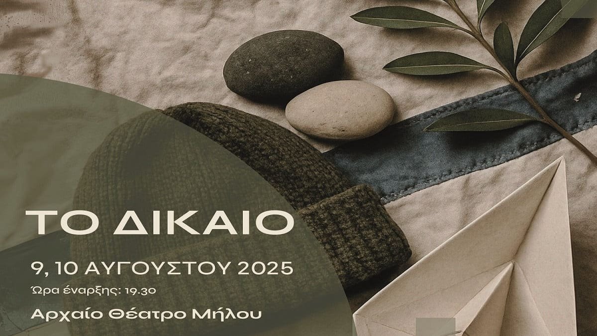 Η θεατρική παράσταση «Το δίκαιο», εμπνευσμένη από τον διάλογο των Μηλίων με τους Αθηναίους όπως αυτός περιγράφεται από τον Θουκυδίδη, έρχεται στο Αρχαίο Θέατρο Μήλου για δύο μοναδικές παραστάσεις, στις 9 και 10 Αυγούστου, στο πλαίσιο του προγράμματος του θεσμού του Υπουργείου Πολιτισμού «Όλη η Ελλάδα ένας πολιτισμός 2025». Στην παράσταση, οι σύγχρονοι θεατές-πολίτες καλούνται να πάρουν απόφαση για το μέλλον του τόπου σε μια προσομοίωση μιας ενδεχόμενης πολεμικής απειλής.