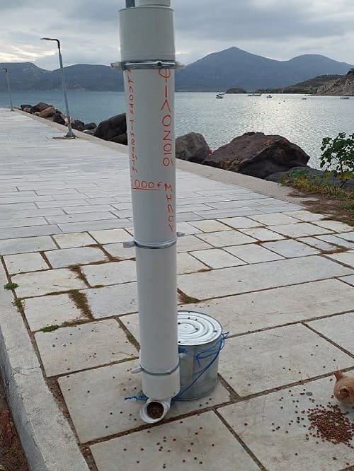 Αυτές τις μέρες στη Μήλο, έχει ξεκινήσει να υλοποιείται μια πρωτοβουλία η οποία ενώ θα μπορούσε να συμβάλει ουσιαστικά στη προστασία και φροντίδα των αδέσποτων γατιών, φαίνεται τελικά να δημιουργεί σοβαρά προβλήματα τόσο για τα ζώα όσο και για εκείνους που τα φροντίζουν καθημερινά. Η προσπάθεια αυτή δημιουργίας οργανωμένων σημείων σίτισης για τα αδέσποτα ζώα αποτελεί ένα θετικό βήμα για την έκφραση πολιτισμού, φροντίδας και αγάπης. Η ευθύνη απέναντι στα ζώα δεν είναι απλώς τυπική, είναι ένδειξη σεβασμού και αρμονικής συνύπαρξης. Ωστόσο, η αποτελεσματικότητα μιας τέτοιας πρωτοβουλίας κρίνεται στην πράξη. Οι νέες ταΐστρες παρουσιάζουν αδυναμίες τόσο ως προς τη χωρητικότητα τροφής και νερού όσο και ως προς την τοποθέτηση. Μία από αυτές έχει τοποθετηθεί δίπλα σε περιφερειακό δρόμο στον Αδάμαντα, εκθέτοντας τα γατάκια που θα προσπαθήσουν να τραφούν σε άμεσο κίνδυνο, με κάθε λογής οχήματα να αναπτύσσουν ταχύτητα, ιδιαίτερα σε τουριστική περίοδο. Σε μια βόλτα στο πάρκινγκ της Πλάκας, παρατήρησα μια άλλη ταΐστρα να βρίσκεται κάτω από ένα ετοιμόρροπο ερείπιο.
