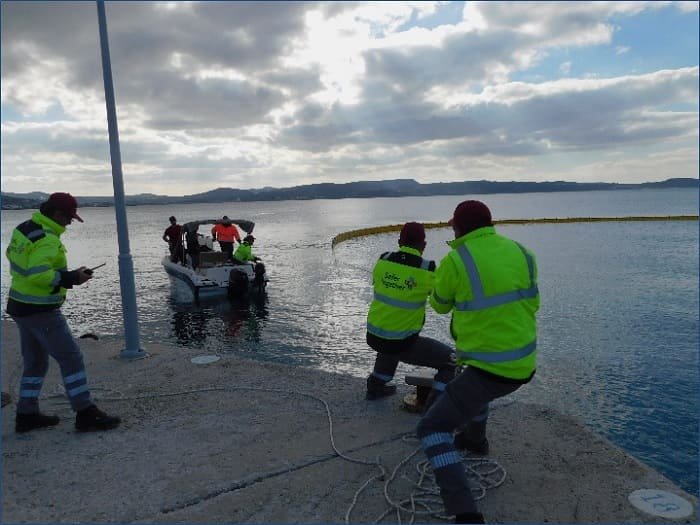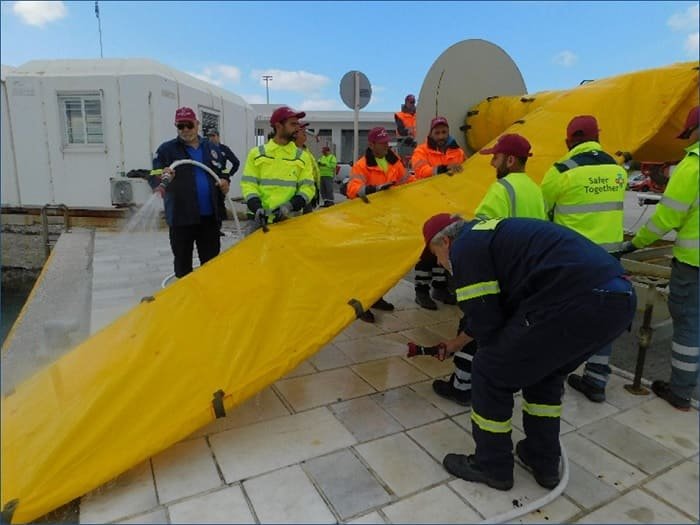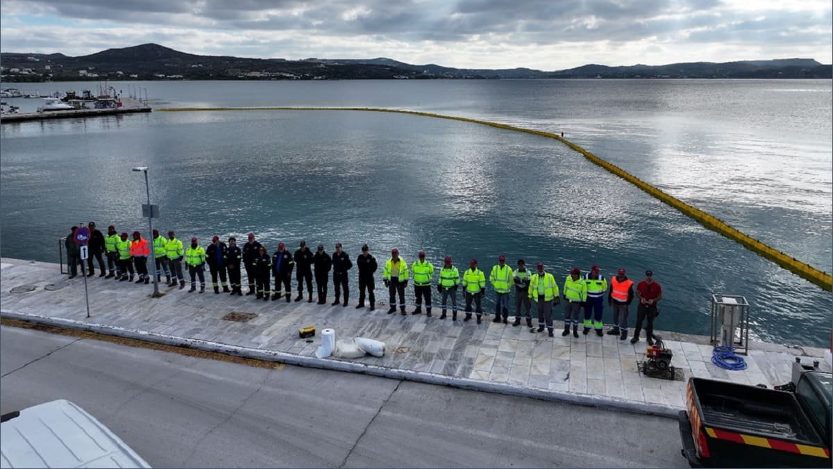 Τέλος αφού ανακτήθηκε η υποτιθέμενη κηλίδα με τη χρήση του Skimmer και εν συνεχεία των απορροφητικών υλικών και, σημάνθηκε η ολοκλήρωση της Άσκησης, στην οποία συμμετείχαν άνω των 30 ατόμων.