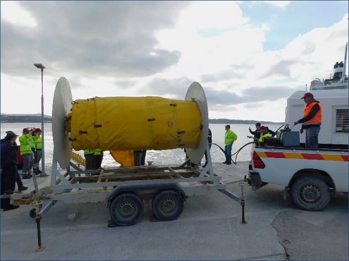 Τέλος η ανέμη με το φράγμα, μεταφέρθηκε με τη βοήθεια οχήματος 4 Χ 4 της IMERYS στις εγκαταστάσεις της στα Βούδια, ενώ ένα άλλο όχημα επίσης 4 Χ 4 μετέφερε τον λοιπό εξοπλισμό του ΔΛΤ Μήλου στο Container όπου φυλάσσεται στην Κάναβα.