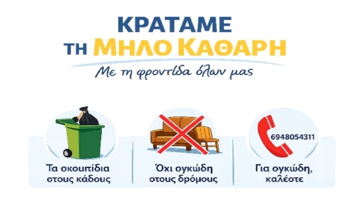 Έκκληση προς κατοίκους και επισκέπτες για αυξημένη προσοχή στην καθαριότητα του νησιού απευθύνει ο Δήμος Μήλου ενόψει των ημερών του Πάσχα, τονίζοντας τη σημασία της συλλογικής ευθύνης για τη διατήρηση της εικόνας του νησιού.