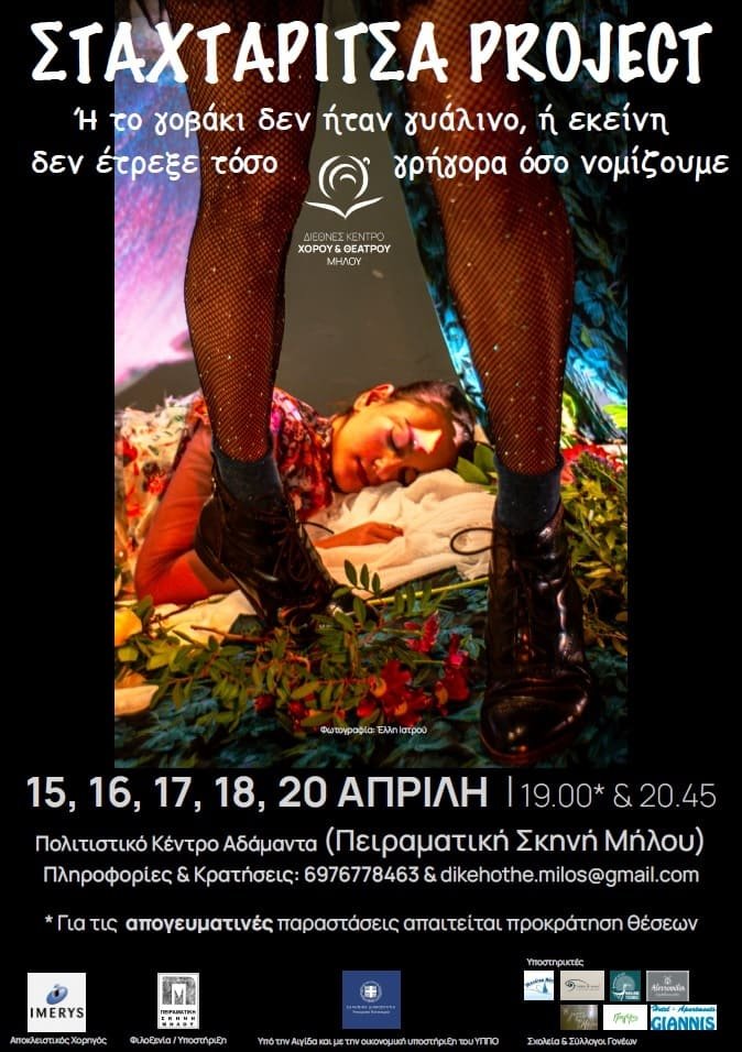 ΠΑΡΑΓΩΓΗ: Διεθνές Κέντρο Χορού & Θεάτρου Μήλου ΑΜΚΕ, υπό την αιγίδα και με την οικονομική υποστήριξη του Υπουργείου Πολιτισμού, με τη φιλοξενία και την υποστήριξη της Πειραματικής Σκηνής Μήλου