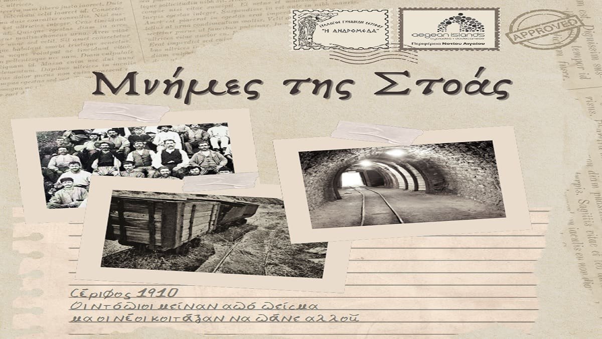 Ο Σύλλογος Γυναικών Σερίφου «Η Ανδρομέδα» σας προσκαλεί στη μουσικοχορευτική εκδήλωση «Μνήμες της Στοάς», ένα καλλιτεχνικό αφιέρωμα στους ανθρώπους, τις ιστορίες και τις μνήμες που ζωντάνεψαν τη ζωή και την πολιτιστική ταυτότητα της Στοάς και της Σερίφου.