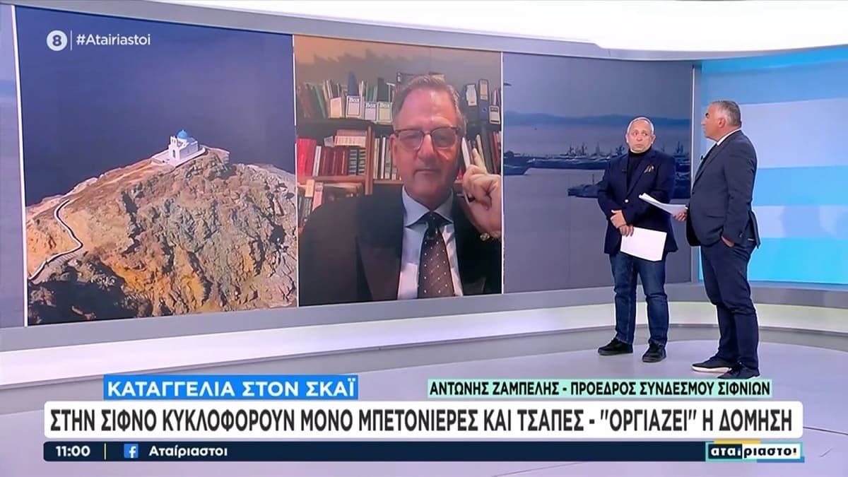 Για το συγκεκριμένο θέμα μίλησε στην τηλεόραση του ΣΚΑΪ ο πρόεδρος του Συνδέσμου Σιφνίων κ. Αντώνης Ζαμπέλης.