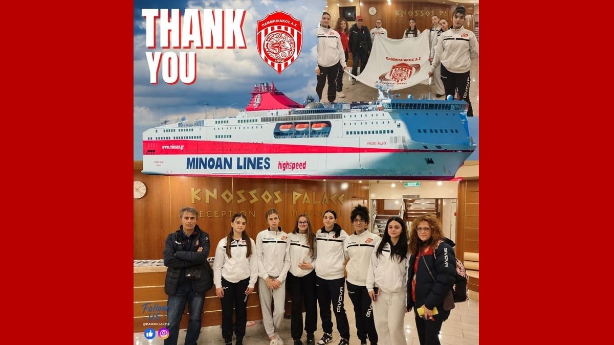 Τις θερμές του ευχαριστίες προς τη MINOAN LINES για τη διαρκή στήριξη προς τον σύλλογο και τις ομάδες του εκφράζει με ανακοίνωσή του ο Παμμηλιακός Αθλητικός Σύλλογος.