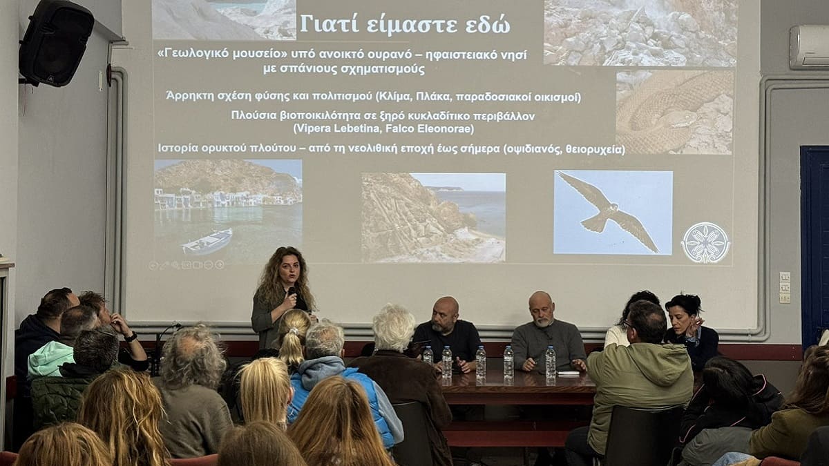 Με αιχμές για την πορεία της ανάπτυξης στη Μήλο πραγματοποιήθηκε η δημόσια παρουσίαση της Τοπικής Επιτροπής της Ελληνικής Εταιρείας Περιβάλλοντος και Πολιτισμού, με παρεμβάσεις που ανέδειξαν κρίσιμα ζητήματα για το μέλλον του νησιού και τη διαχείριση των πιέσεων που δέχεται.