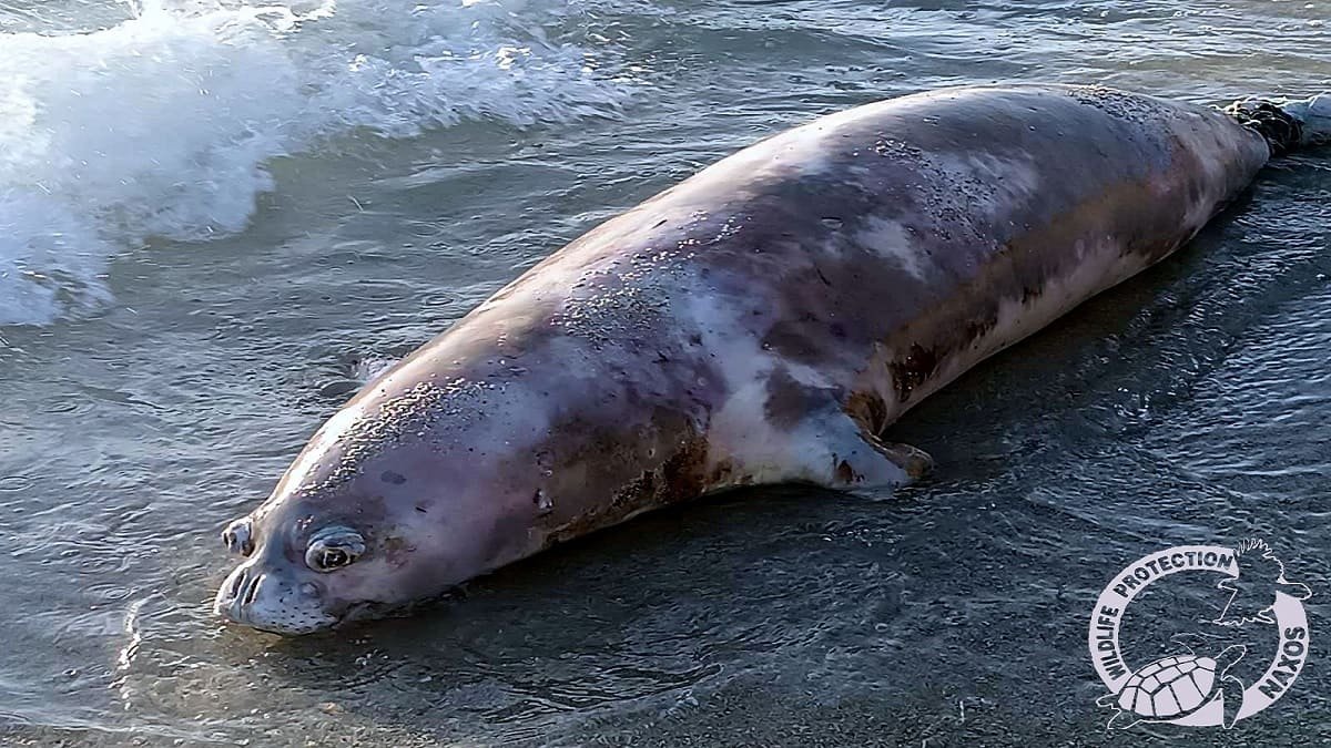 «Μια φώκια Monachus monachus εκβράστηκε νεκρή στην παραλία Καστράκι Νάξου.