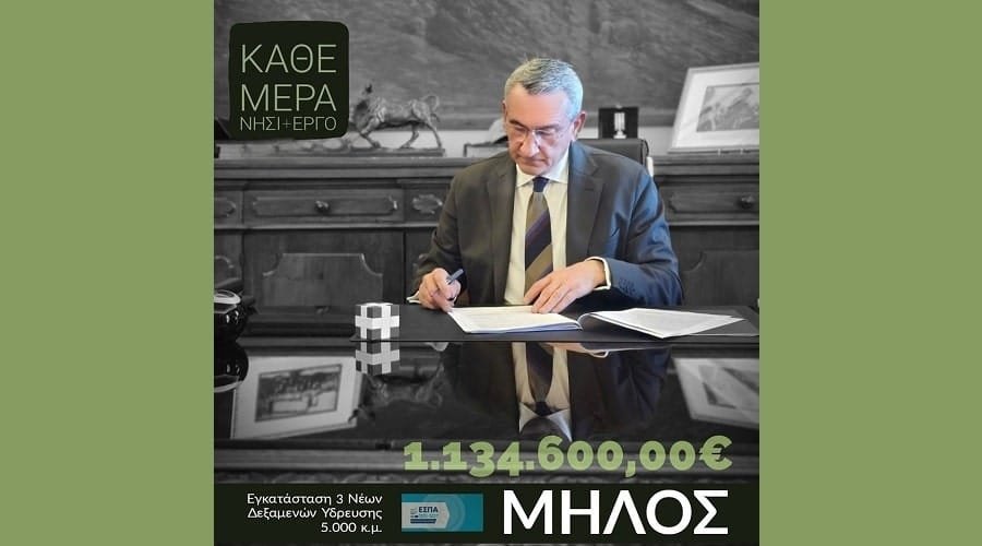 Η εξασφάλιση πόρων για την υλοποίηση έργων υποδομής στα νησιά μας, είναι στοιχείο της δουλειάς μας και καθημερινή μάχη μας. Ο Δήμος Μήλου, μελέτησε την εγκατάσταση 3 νέων δεξαμενών ύδρευσης 5.000 κυβικών μέτρων και μας κατέθεσε το αίτημα του στην σχετική πρόσκληση που απευθύναμε στους Δήμους μας.