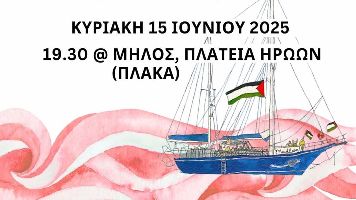 Η Παλαιστινιακή Παροικία Ελλάδος σας καλεί σε συγκέντρωση διαμαρτυρίας, στηρίζοντας την πορεία προς τη Γάζα για το τερματισμό του αποκλεισμού, για κάθε αλληλέγγυο, για το «Madleen», για την Παλαιστίνη!