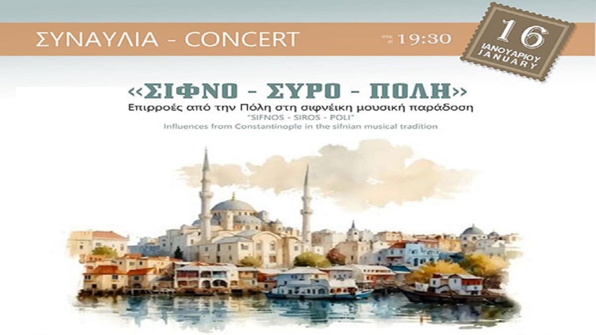 Μια ξεχωριστή πολιτιστική εκδήλωση μνήμης, λόγου και μουσικής διοργανώνουν με την ανατολή της νέας χρονιάς η Οικουμενική Ομοσπονδία Κωνσταντινουπολιτών και ο Πολιτιστικός Σύλλογος Σίφνου, στο Πολεμικό Μουσείο Αθηνών. Η εκδήλωση με τίτλο «Σύρο – Σίφνο – Κωνσταντινούπολη» είναι αφιερωμένη στη διαχρονική αξία του ελληνικού πολιτισμού και της συλλογικής ταυτότητας.