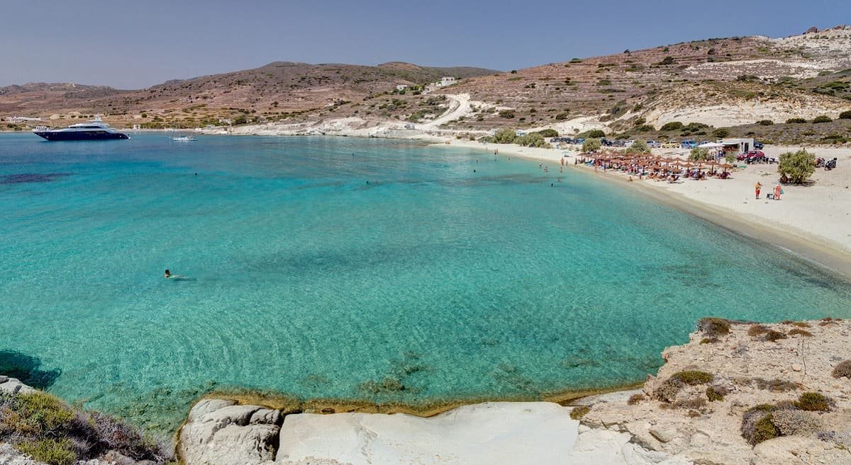 Για την παραλία της Κιμώλου, αναφέρει ότι είναι γνωστή για τα καθαρά νερά και τη λευκή άμμο της, που συχνά αποδίδεται από τους ντόπιους στην ιστορία του νησιού ως ορυχείο κιμωλίας. Το τμήμα άμμου μήκους 250 μέτρων είναι προσβάσιμο μέσω μιας διαδρομής μίας ώρας με το φέρι από το παρακείμενο κυκλαδίτικο νησί της Μήλου, ακολουθούμενο από μια μικρή απόσταση με το αυτοκίνητο από την κεντρική αποβάθρα της Κίμωλου.