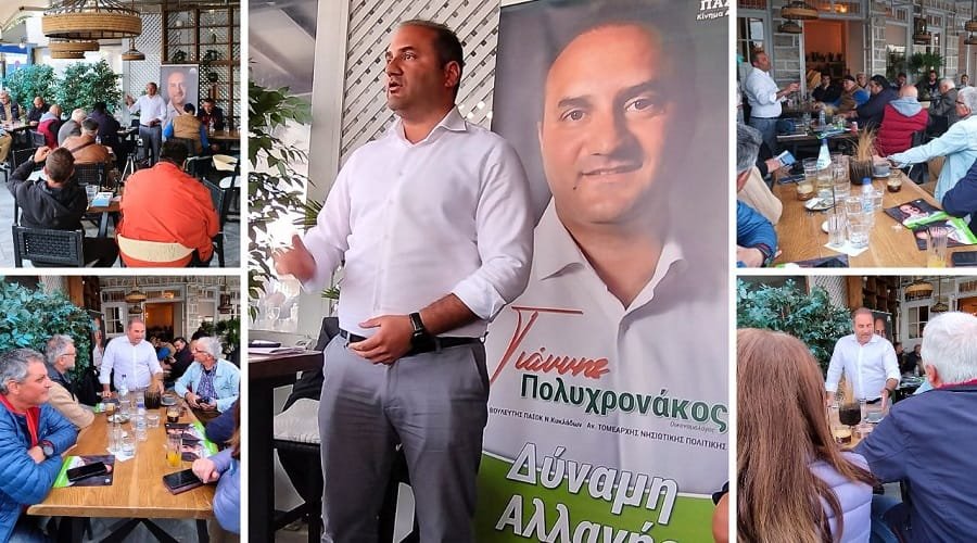 Το μήνυμα των Κυκλάδων στις 21 Μαΐου πρέπει να είναι ηχηρό. Ένα Ισχυρό ΠΑΣΟΚ, η εμπιστοσύνη στους νέους ανθρώπους με προτάσεις, ιδέες και αποφασιστικότητα, πρέπει να είναι η απάντηση και η επιλογή των πολιτών» τόνισε ο Γιάννης Πολυχρονάκος απευθυνόμενος στους πολίτες της Σύρου.