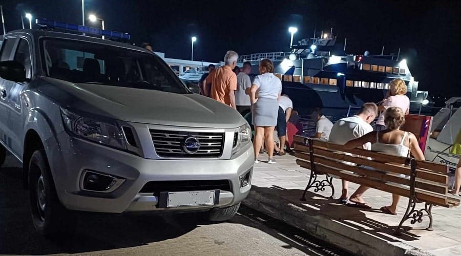 Αμέσως τα στελέχη του Λιμενικού μετέβησαν στο σημείο, όπου εντόπισαν μία ημεδαπή γυναίκα, να βρίσκεται καθισμένη επί του κρηπιδώματος μπροστά από το επιβατηγό – τουριστικό σκάφος στο οποίο επέβαινε, η οποία δήλωσε ότι κατά την αποβίβαση της από τη σκάλα του σκάφους στο κρηπίδωμα και κατά το βηματισμό αυτής, τραυματίστηκε στο δεξί της πόδι.