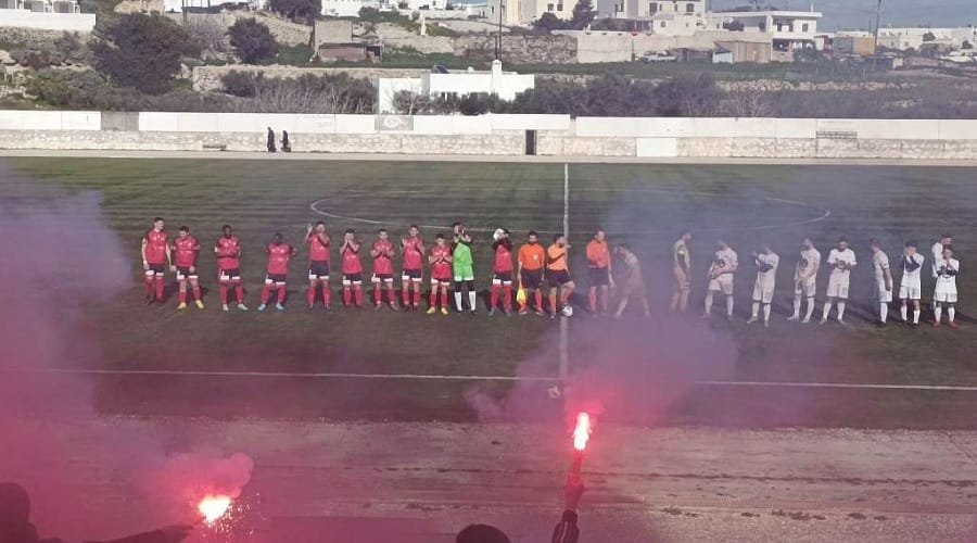 Στο παιχνίδι που έγινε το μεσημέρι δυο στάδιο της Μήλου, για την 13η αγωνιστική του πρωταθλήματος της Α’ κατηγορίας Κυκλάδων το συγκρότημα του Κώστα Παπαδόπουλου κατάφερε να ελέγξει πλήρως τον ρυθμό του αγώνα κόντρα στην ομάδα της Μήλου, που αν και έδειξε διάθεση να πάρει κάτι από το ματς δεν τα κατάφερε να ευχαριστήσει τον κόσμο που έδωσε το βροντερό παρόν στις εξέδρες, κερδίζοντας πάντως το χειροκρότημα για την προσπάθεια.