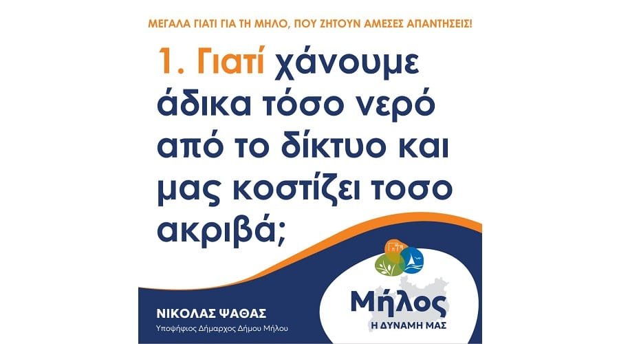 Η πρόταση μας: Αξιοποιούμε το πρόγραμμα τηλεμετρίας που έχει λάβει ο Δήμος Μήλου, χρηματοδότηση ύψους 1.490.000 ευρώ (Πρόγραμμα «Φιλόδημος Ι» –